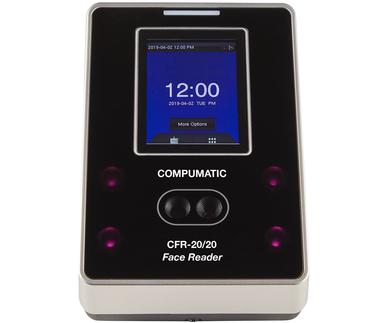 The Compumatic CFR-20/20 connects to your network using Wi-Fi or ethernet. Employees clock by facing the dual cameras. Touch-free, and prevents buddy punching. Best choice for facial recognition clocking.