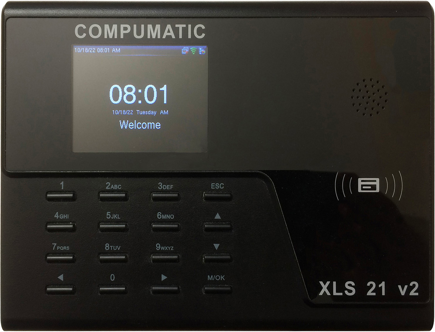 The Compumatic XLS 21 connects to your network using Wi-Fi or ethernet. Employees clock using a RFID proximity badges, proximity fobs, or PINs. Best choice for simple and effective clocking.