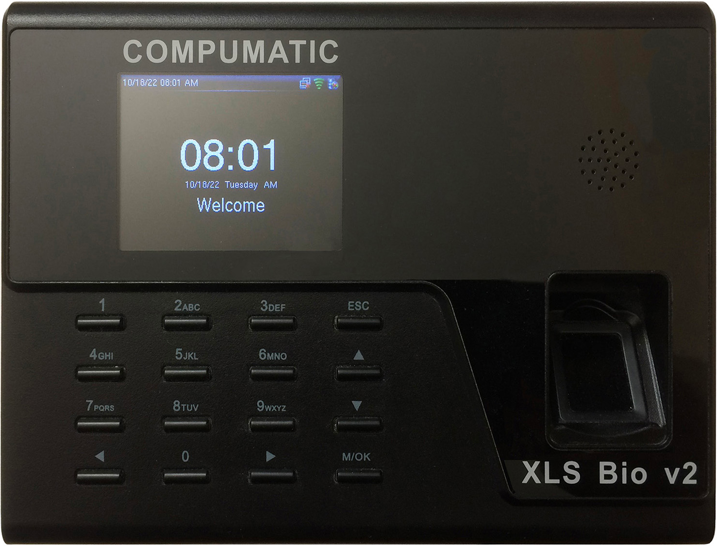 The Compumatic XLS Bio connects to your network using Wi-Fi or ethernet. Employees clock by placing their finger on the sensor. Prevents buddy punching. Best choice for fingerprint biometric clocking.